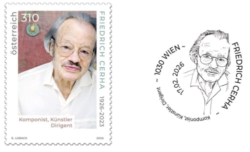 Die Österreichische Post gibt am 17. Februar eine Sonderbriefmarke zum 100. Geburtstag von Friedrich Cerha aus. Die Marke mit von der Graveurmeisterin Kirsten Lubach entworfenen Grafik erscheint in einer Auflage von 210.000 Exemplaren mit dem Nennwert von 3,10 Euro.